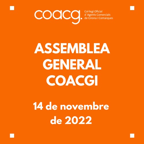 La Junta de Govern del Col·legi Oficial d'Agents Comercials de Girona i Comarques convoca a la col·legiació gironina a l'assemblea general ordinària, que se celebrarà presencialment a la sala d'actes, el dilluns 14 de novembre, a les 19.30 hores en una única convocatòria.